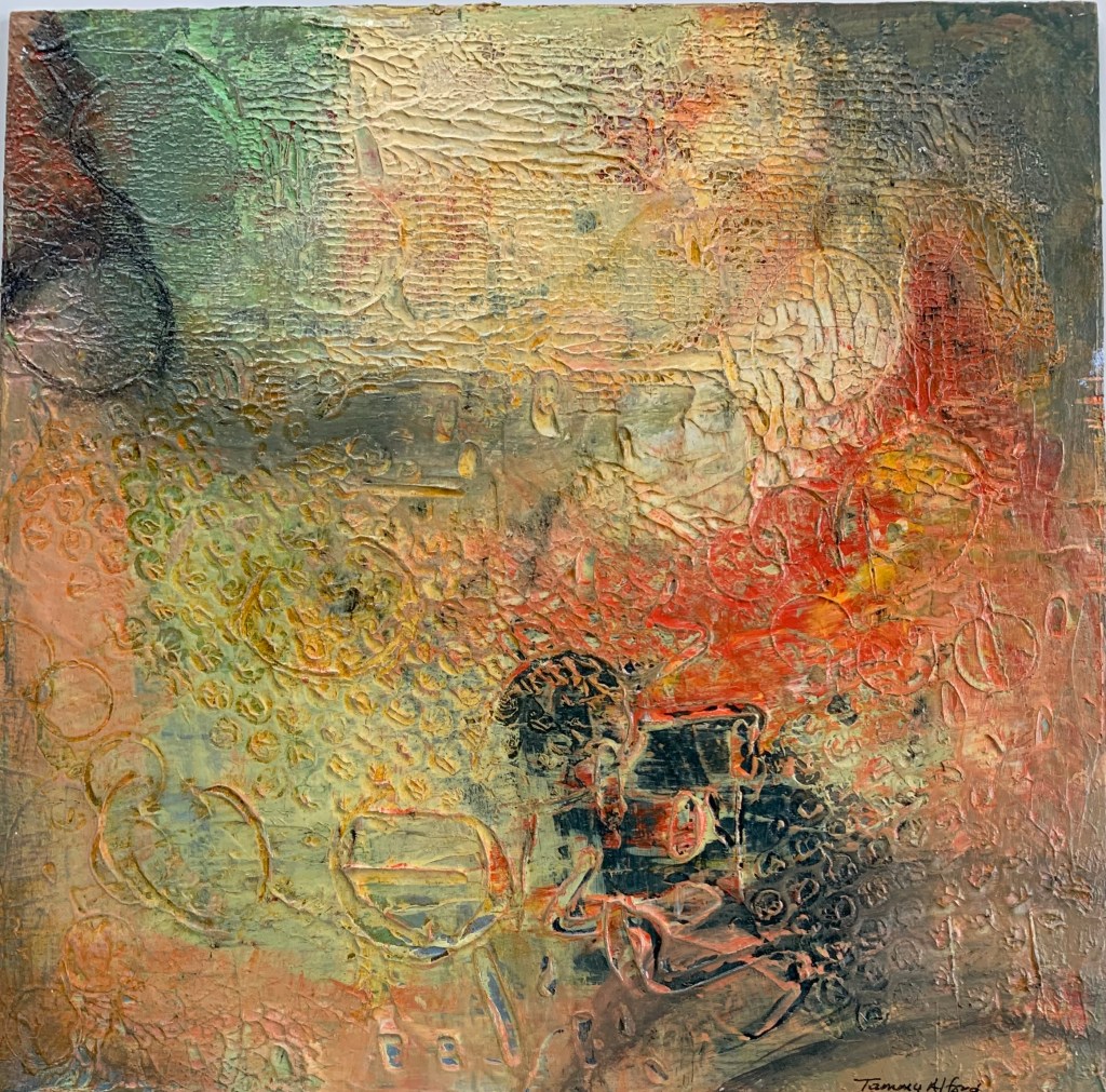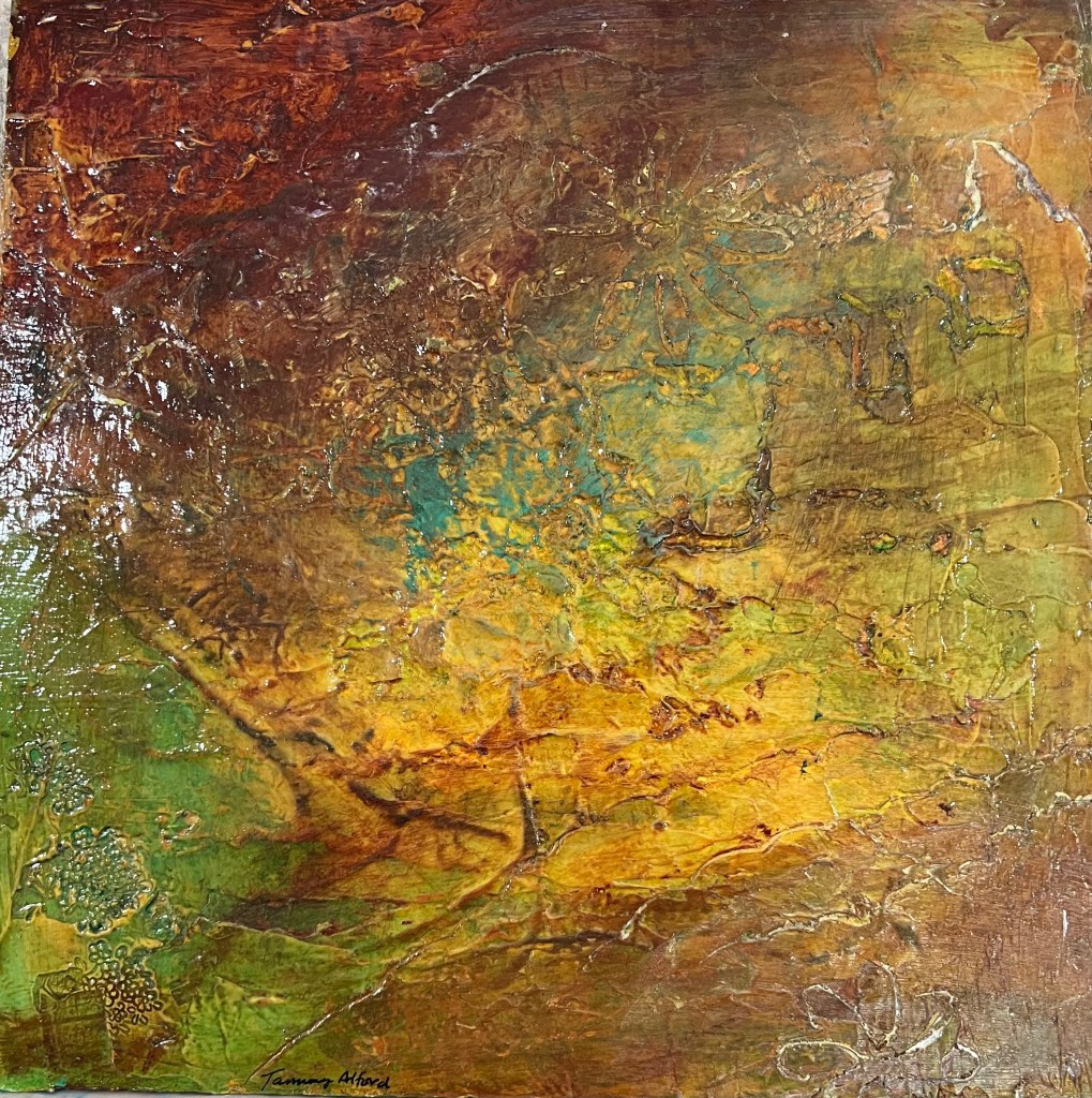 Acrylic Mixed Media on 12″x12″x1″ cradled wood panel. (not framed) $145 Sold