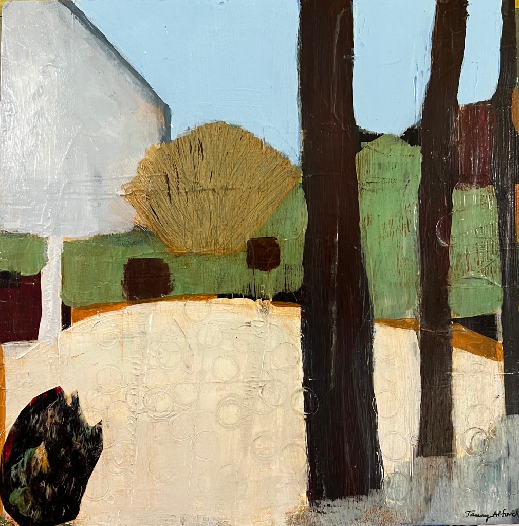 Acrylic mixed media on 12×12 wood panel.